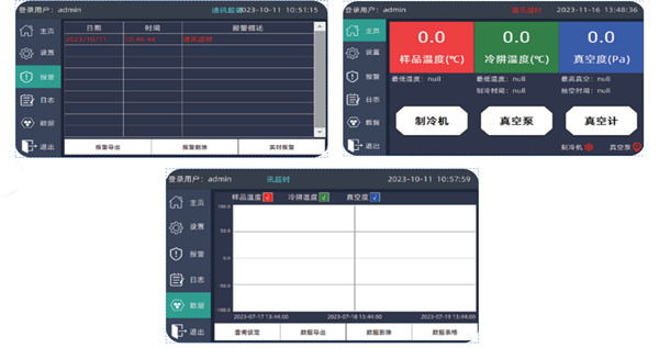 -多重防護機制:真空泄漏報警、壓縮機過熱保護、斷電數據自動保存,保障設備與樣品安全。