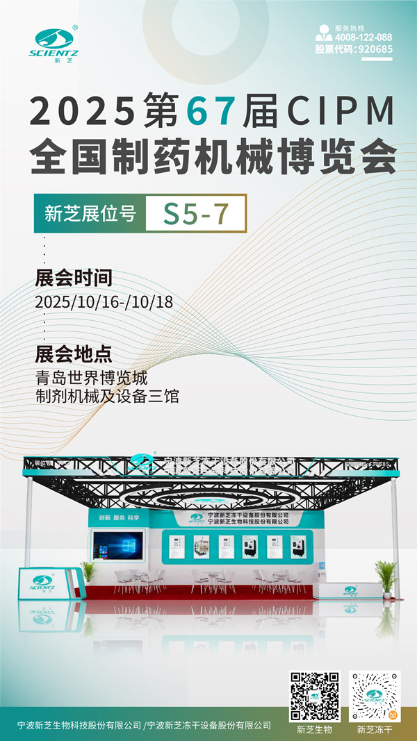 2025年第67屆CIPM(全國制藥機械博覽會)即將于10月16日-10月18日在青島世界博覽城隆重啟幕。新芝凍干誠摯邀請您蒞臨我們的展位,零距離體驗為解決行業挑戰而生的前沿凍干技術與創新解決方案。